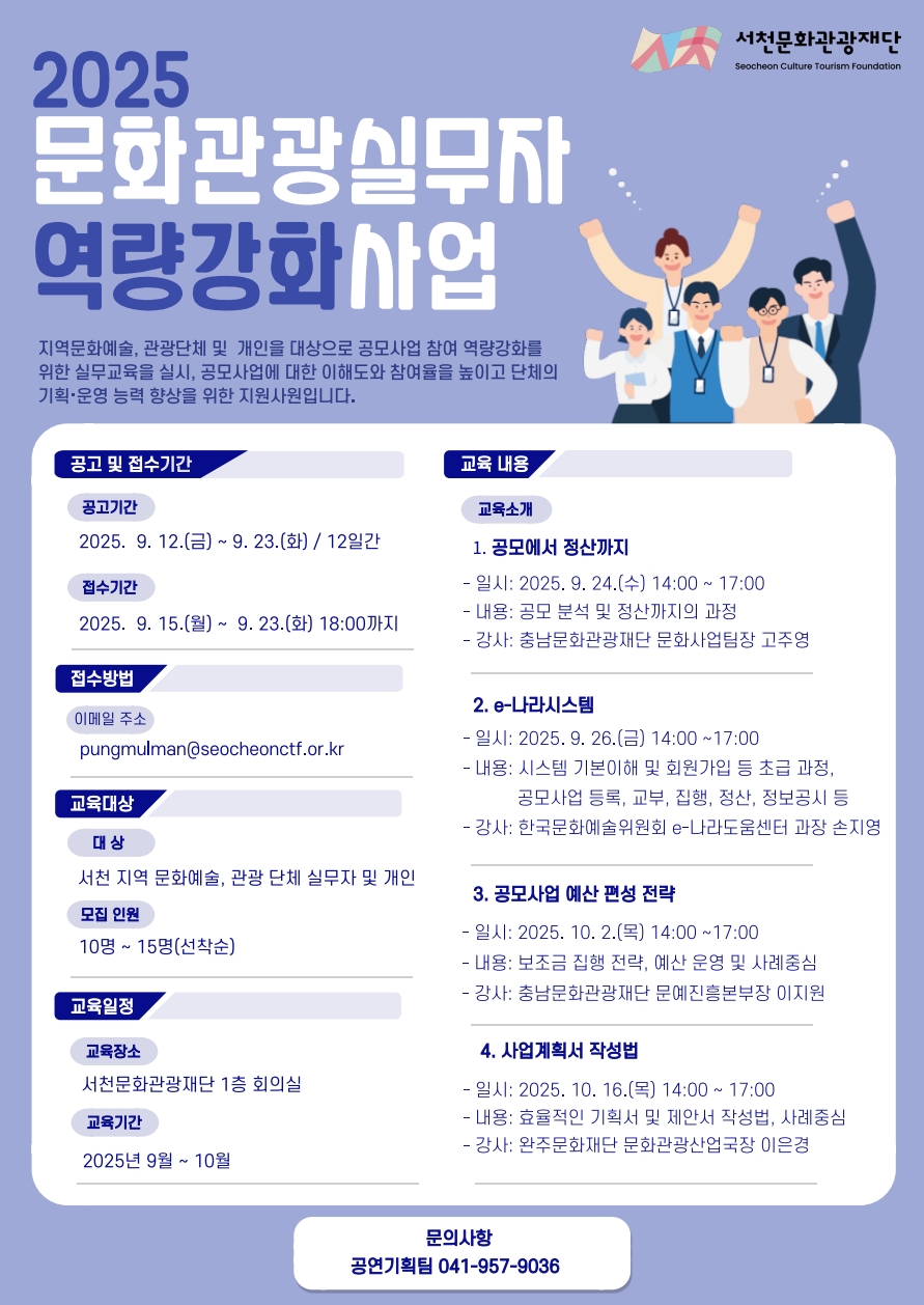 만20세 이상, 서천지역 문화관광실무자 및 서천군민 누구나