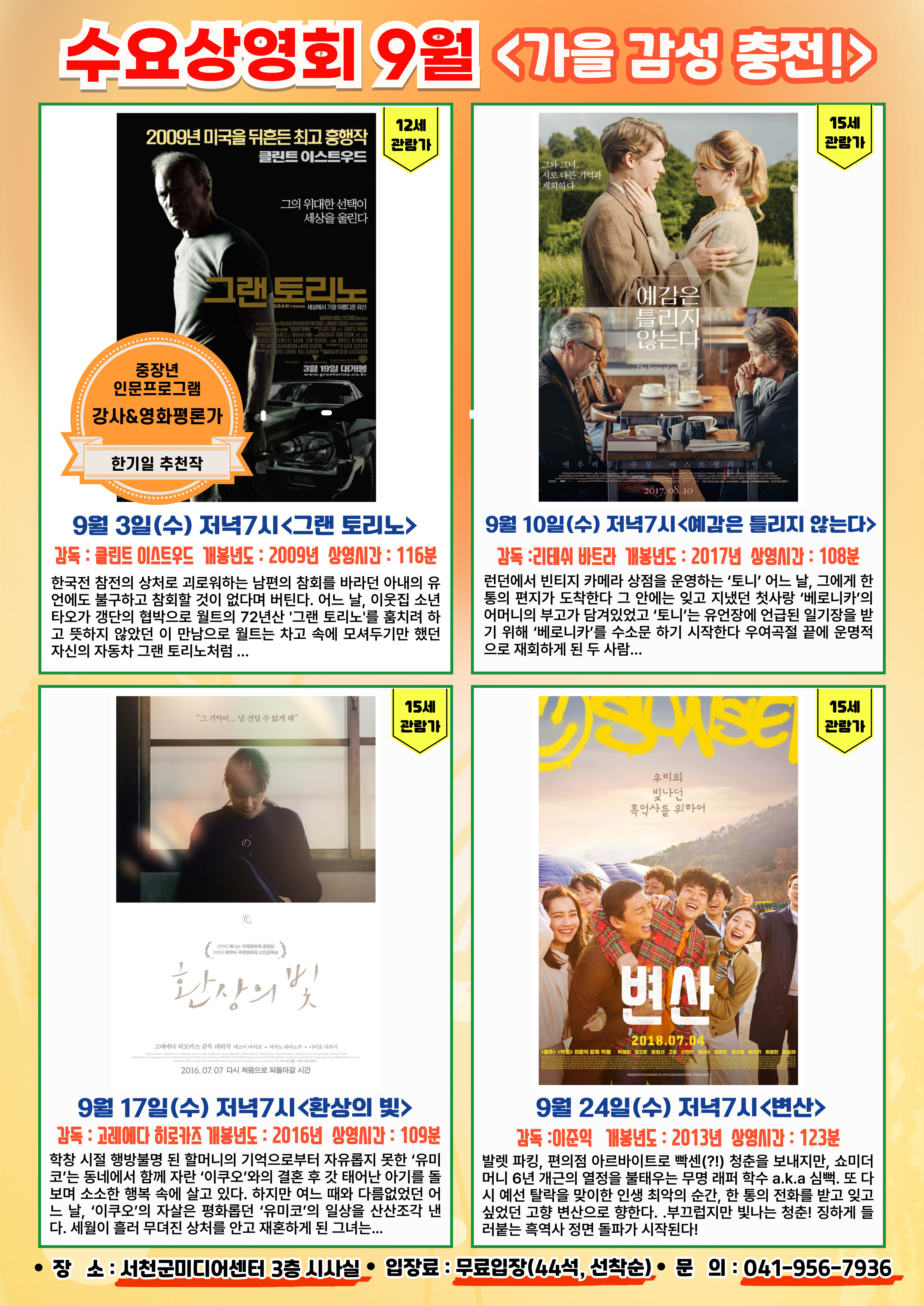 서천군미디어센터 명화극장, 수요상영회 9월 상영작입니다.